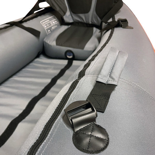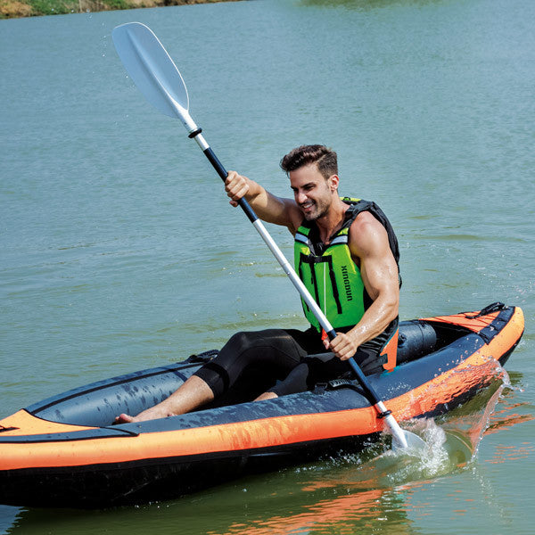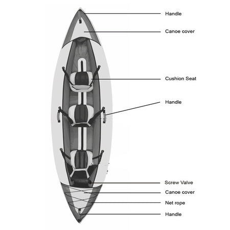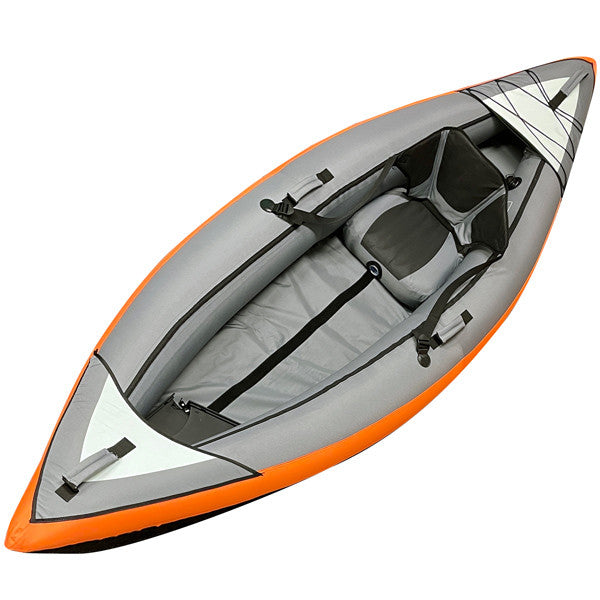 Das Riverside-Kajak verfügt über 3 Ventile, die ein einfaches Aufpumpen und Entleeren ermöglichen. Das Kajak ist mit 1 elastischen Stauraum oben sowie viel Platz unter dem Deck achtern und am Bug sowie 2 starken Griffen für den einfachen Transport zum und vom Wasser ausgestattet.