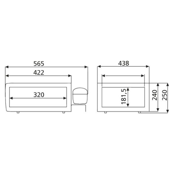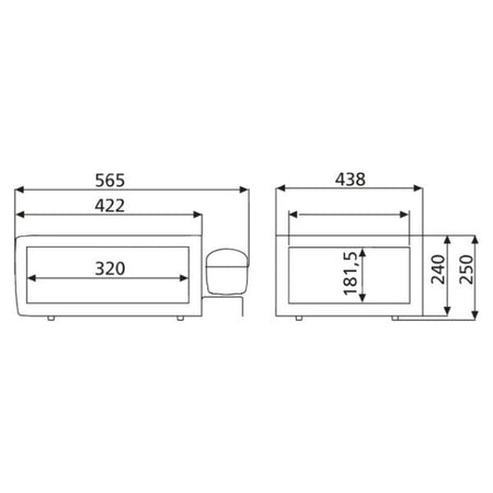 Mål B x H x D 438 mm x 250 mm x 575 mm