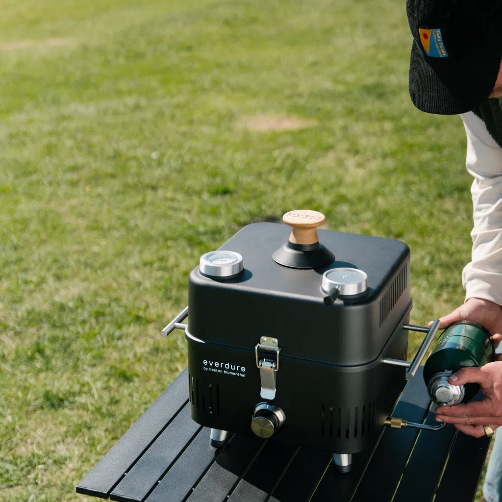 CUBE™ PROFLAME 360 kombinerer bærbarhed med bekvemmeligheden ved gasgrillning og tilbyder en unik grilloplevelse til udendørs eventyr.