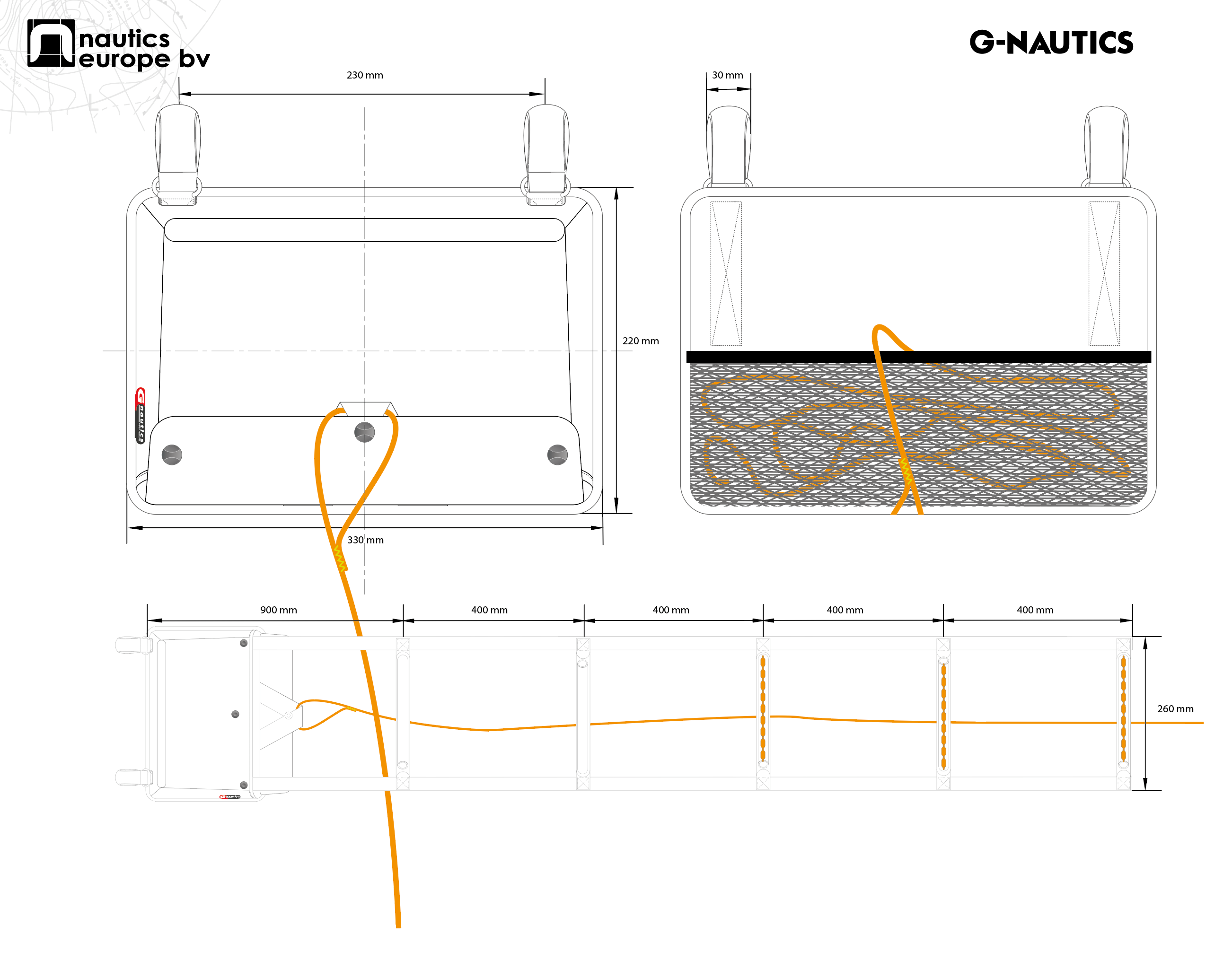 Smart kompakt redningsstige som er nem at monterere. Det varmestøbte EVA-skumbetræk holder en 5-trins stige, der foldes ud ved at trække i snoren. Alle trin er stive, og de nederste trin er vægtede, så stigen nemt falder ud af det stive beskyttelsesbetræk, og det hjælper med at klatre tilbage ombord.