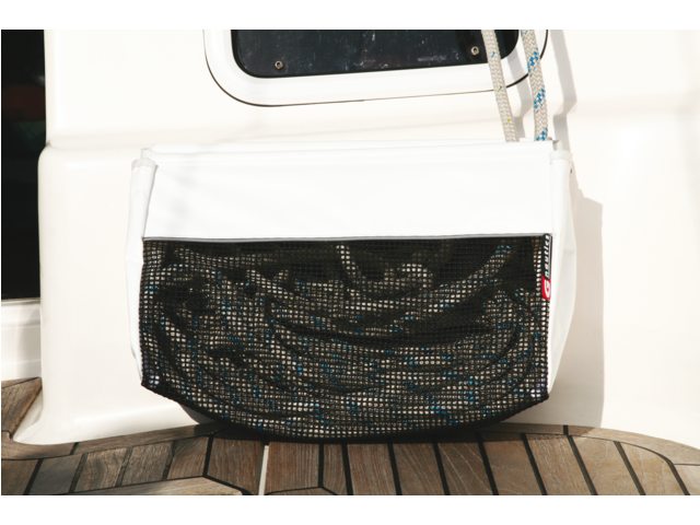 PVC-presenning og netopbevaringspose til fald og skøder. Kulstofrør for nem åbning. Fås i en høj og bred model. Nem at samle uden skruer med velcrolukning.