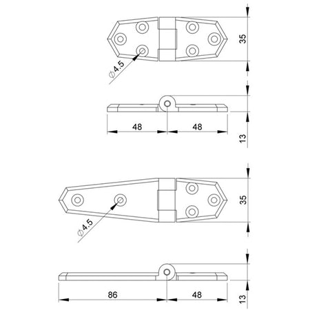 Trudesign hængsel kort sort 96x35mm