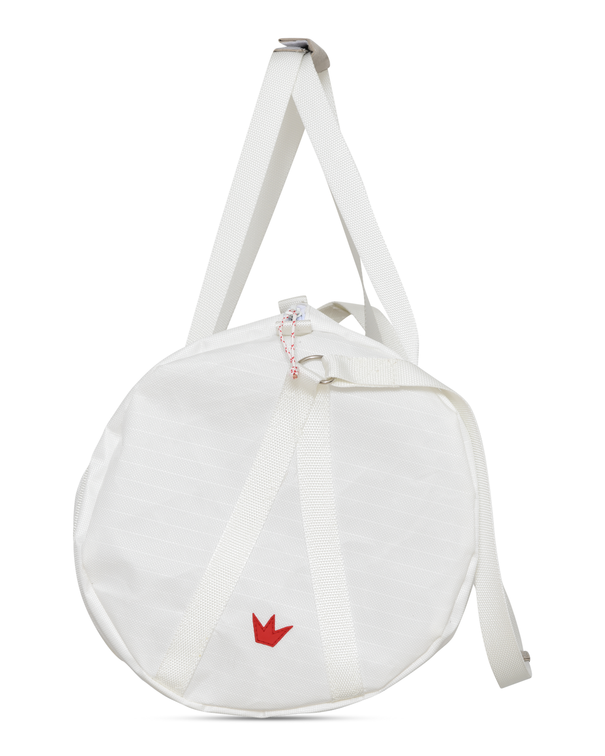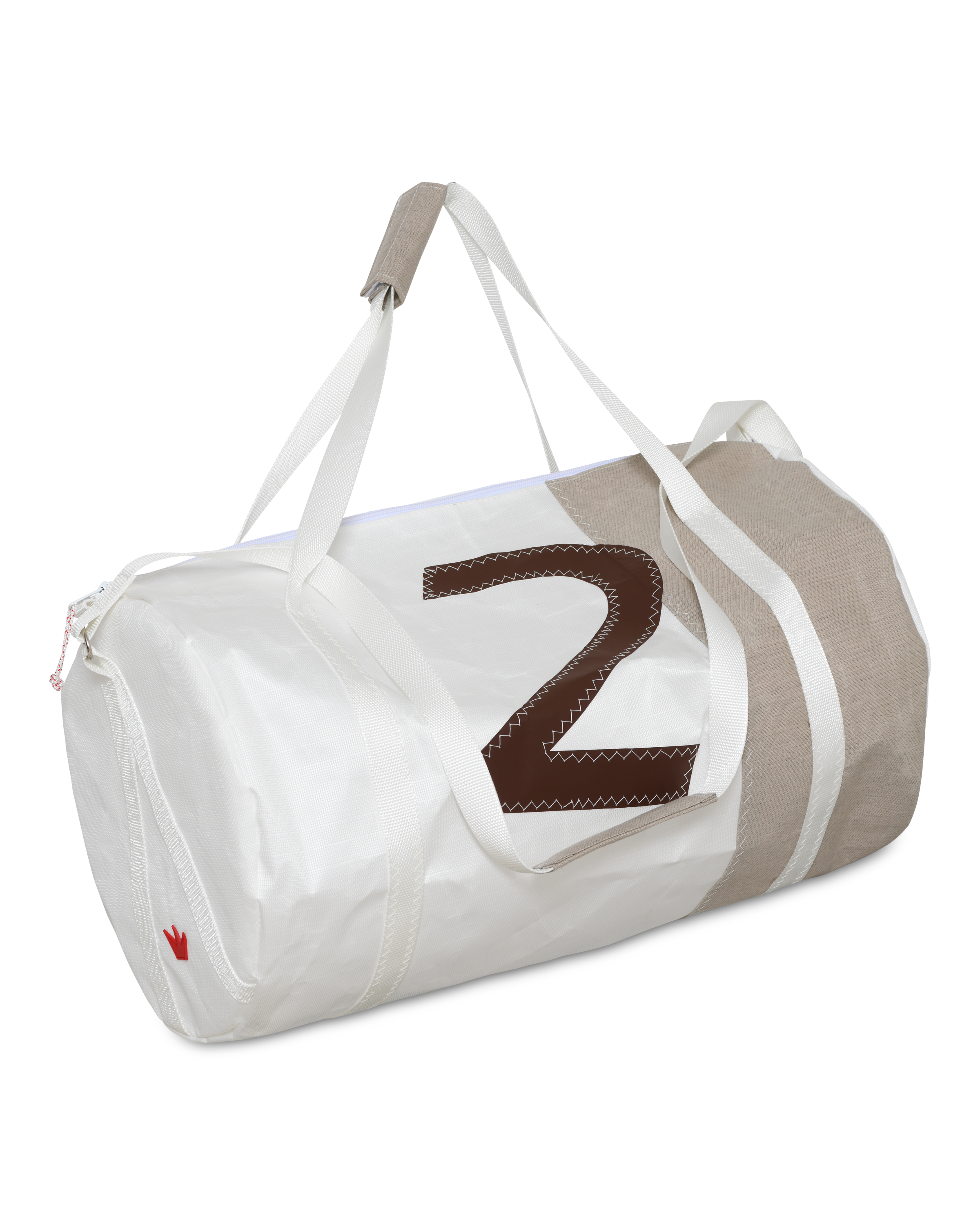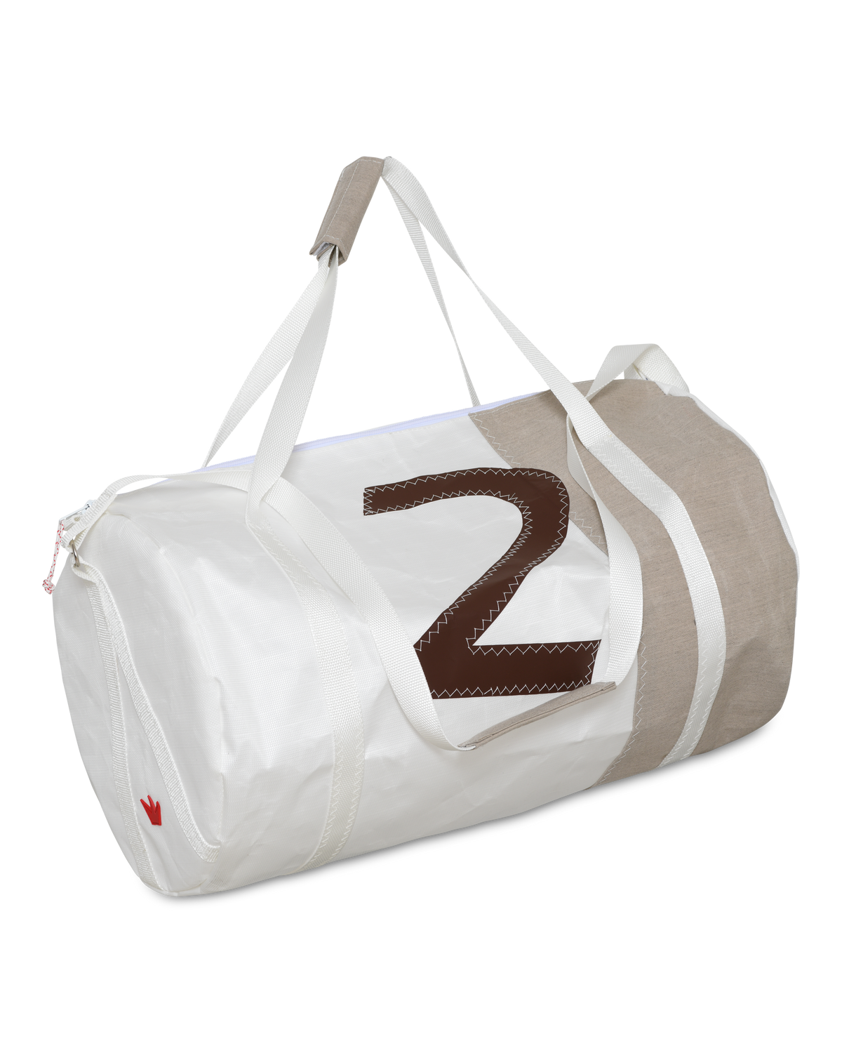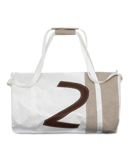 Our Sailbag is an elegant weekend bag crafted from Hydranet sailcloth or a similar material, featuring a canvas lining. Made from white sailcloth, the bag is available in either brown or white canvas.