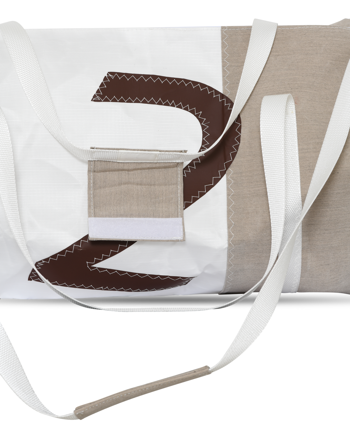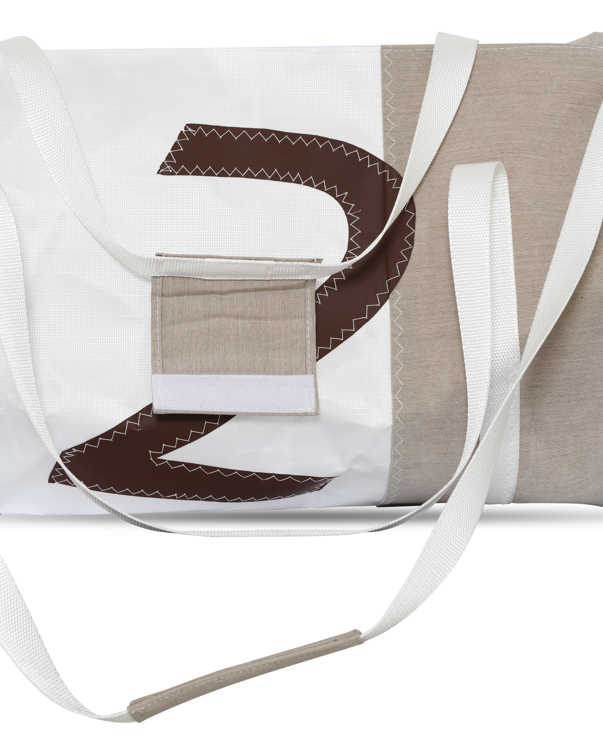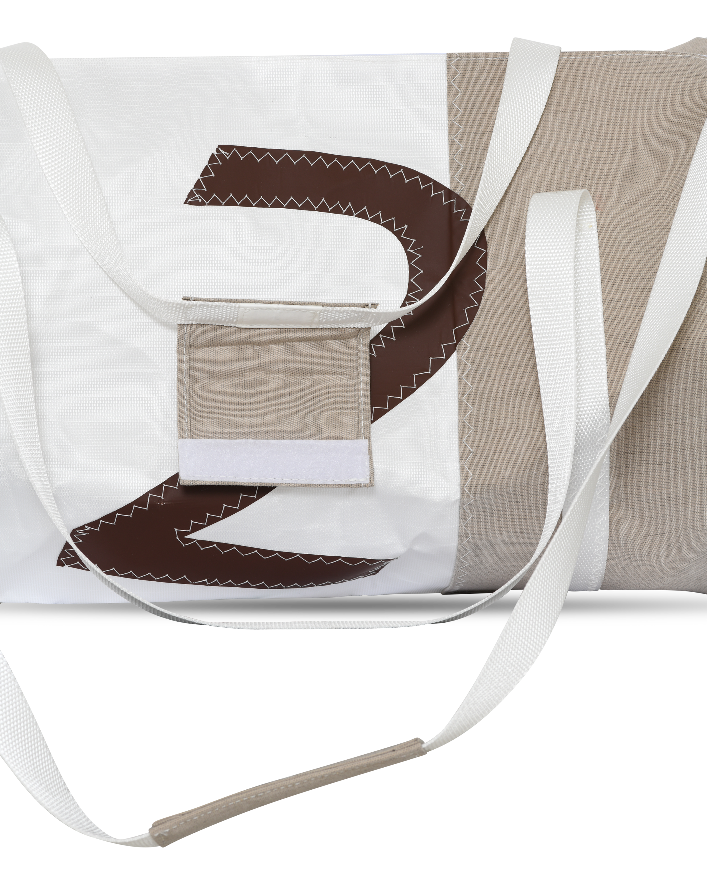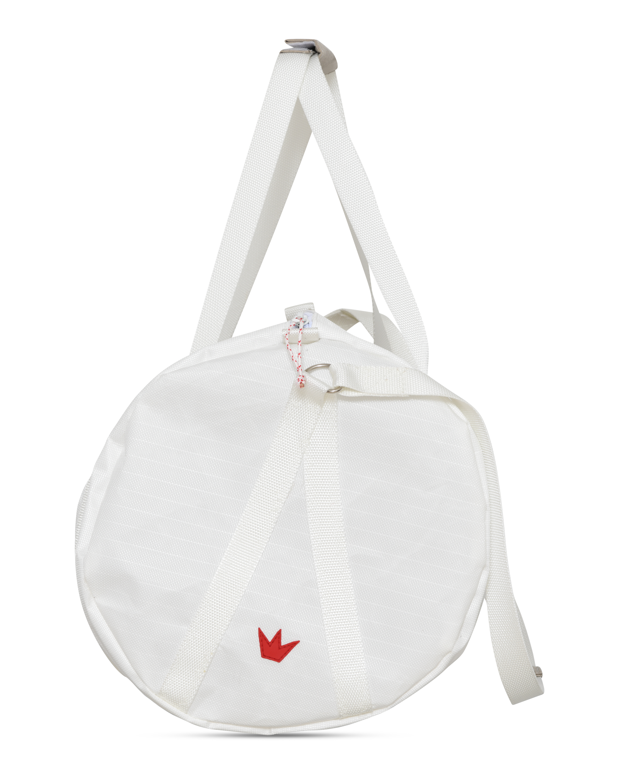 Our Sailbag is an elegant weekend bag crafted from Hydranet sailcloth or a similar material, featuring a canvas lining. Made from white sailcloth, the bag is available in either brown or white canvas.